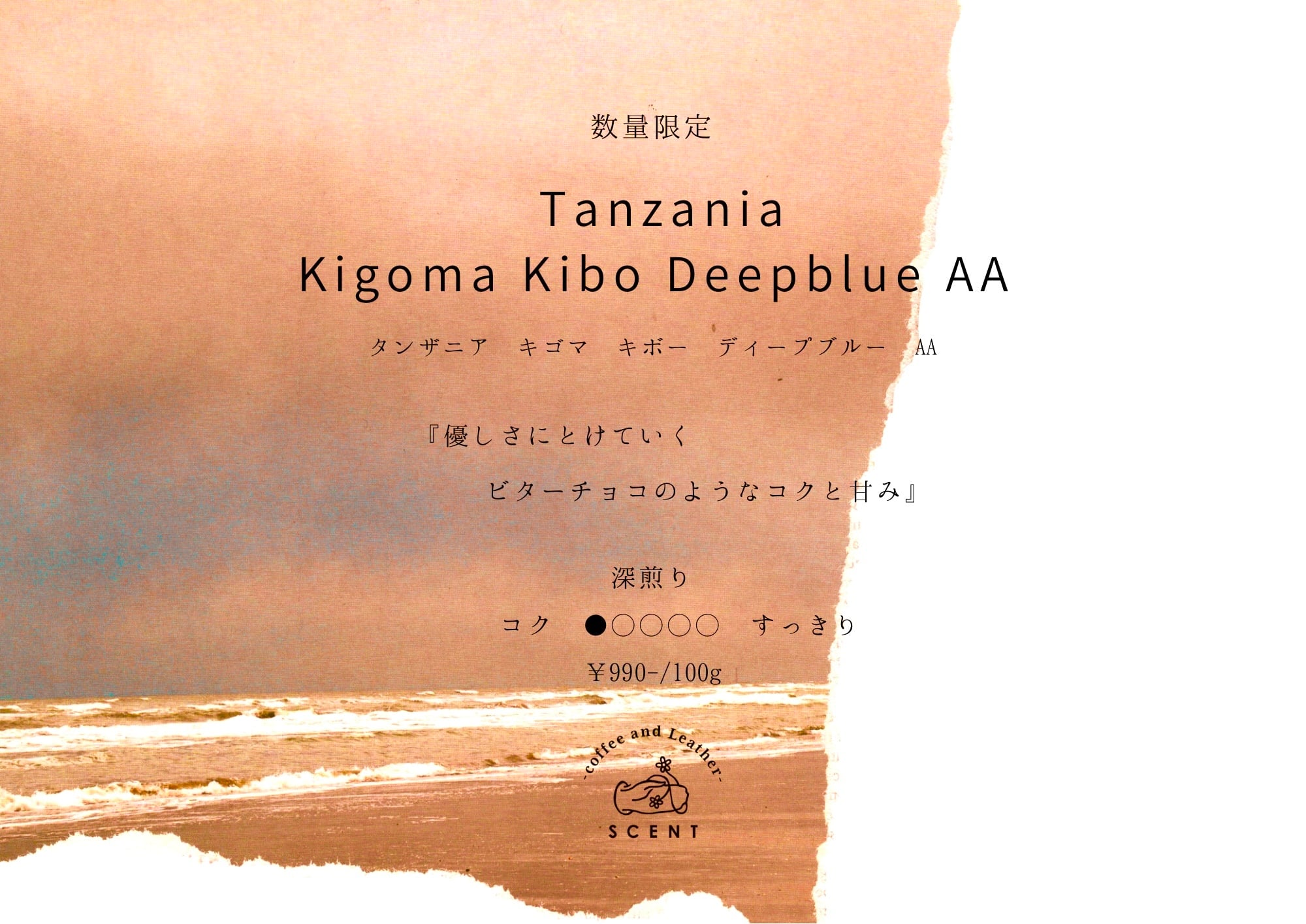 [数量限定]深煎り Tanzania Kigoma Kibo Deepblue AA 100g